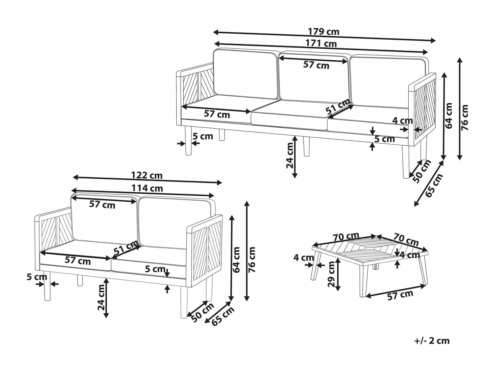 76 x 179 x 65; 76 x 122 x 65 cm