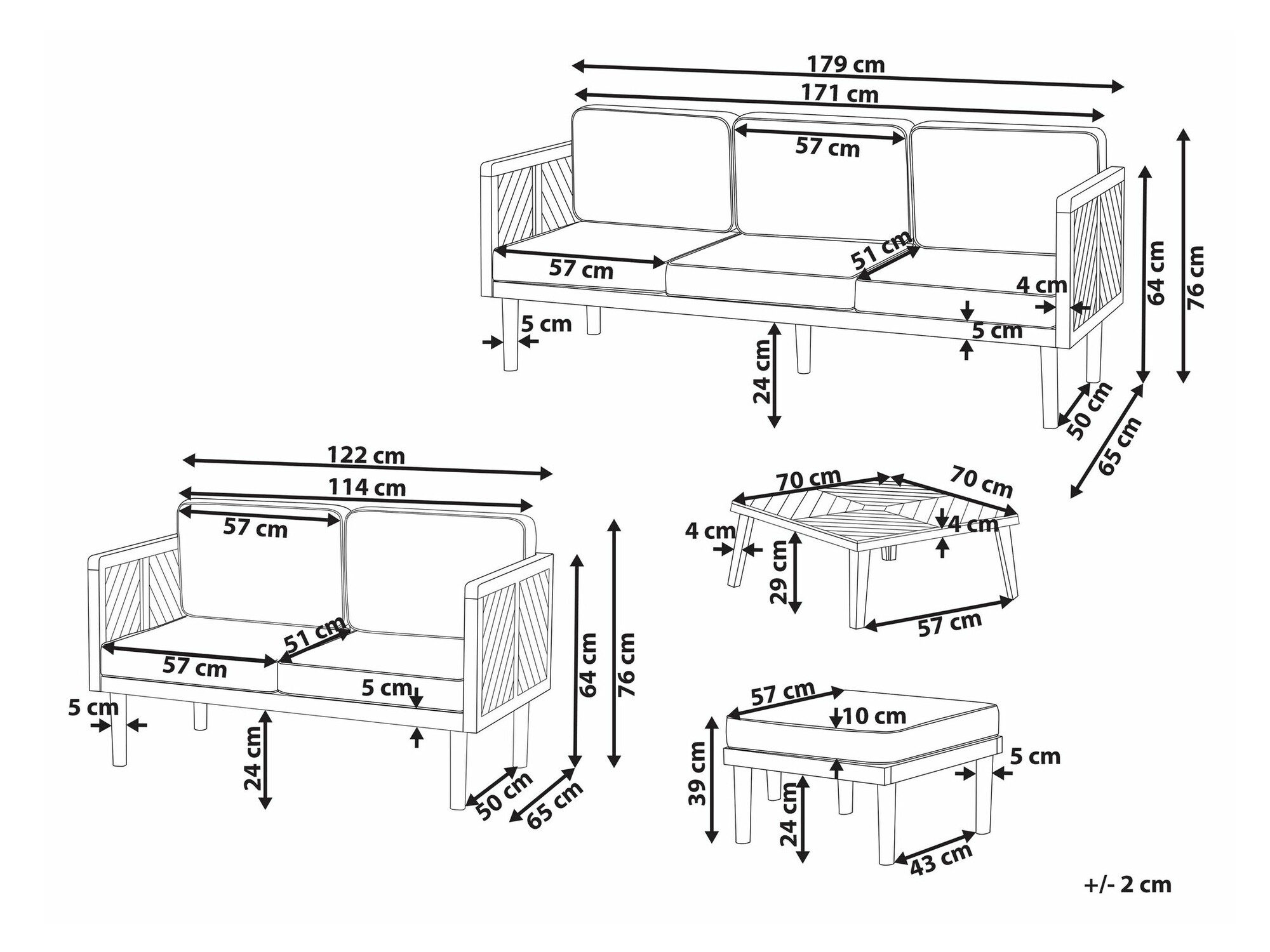 76 x 179 x 65; 76 x 122 x 65 cm