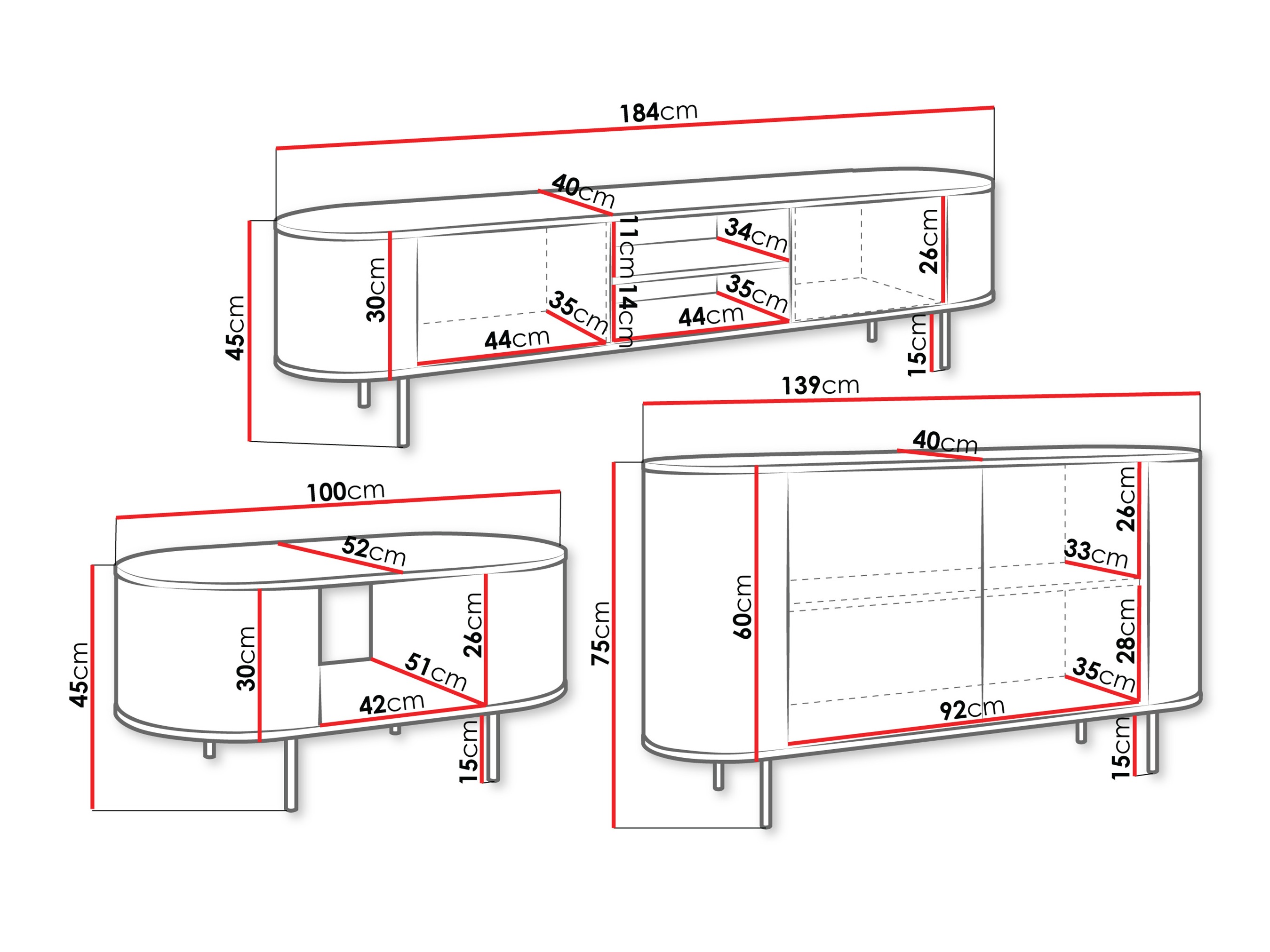 Dimenzije TV stola: