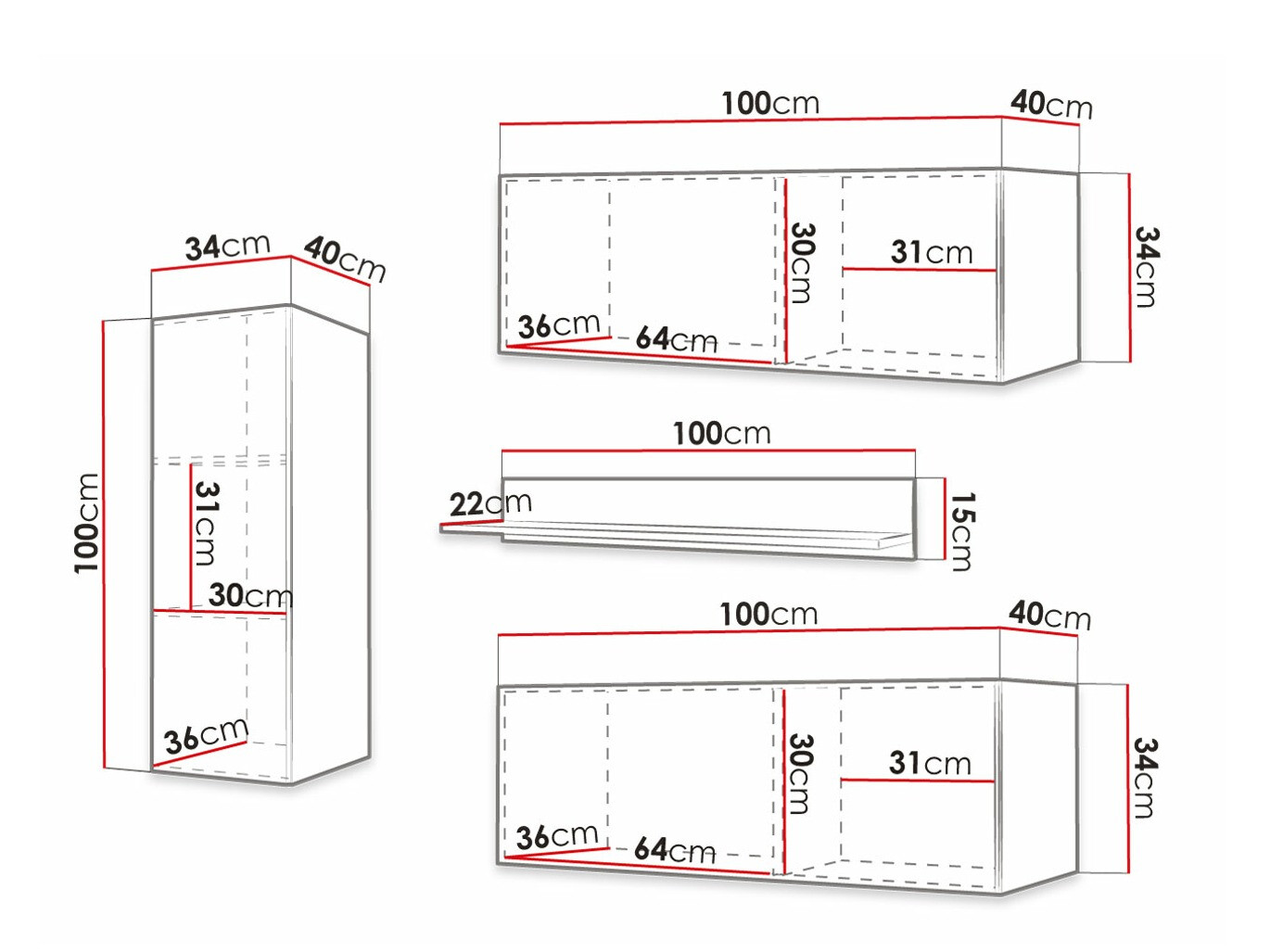 34 x 100 x 40 cm