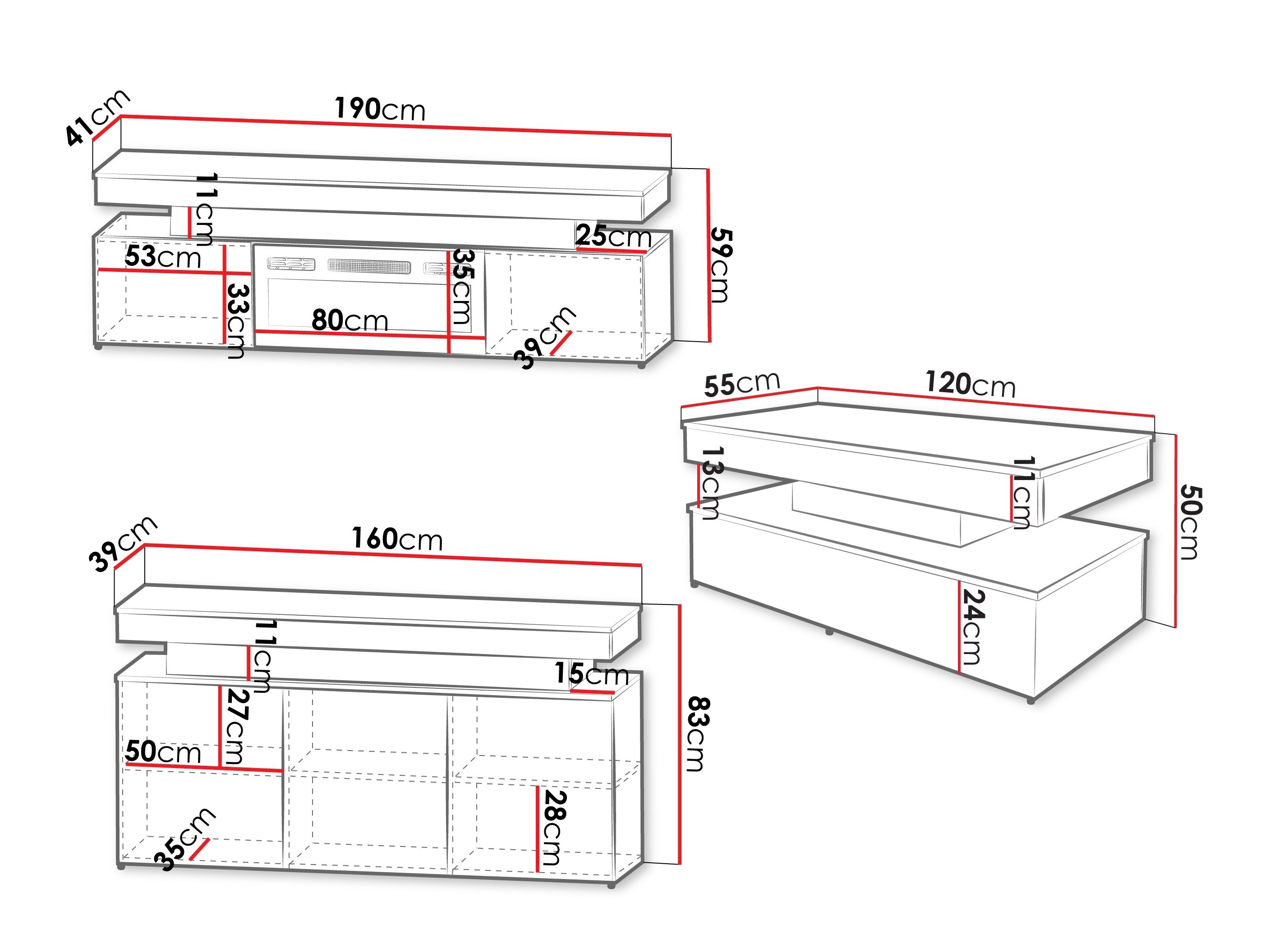 Dimenzije TV stola:
