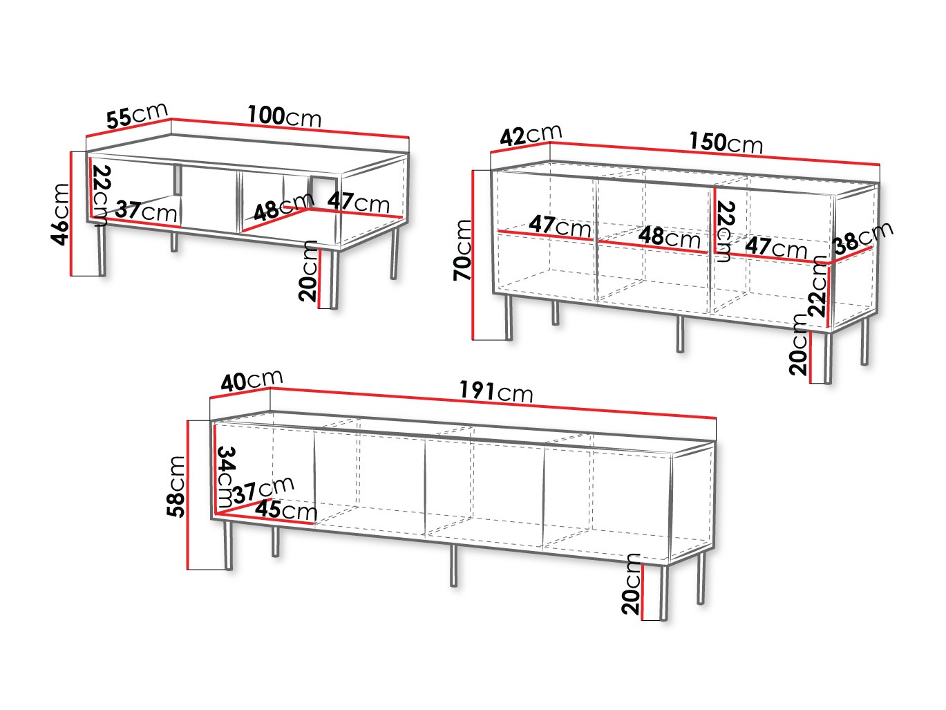 Dimenzije TV stola: