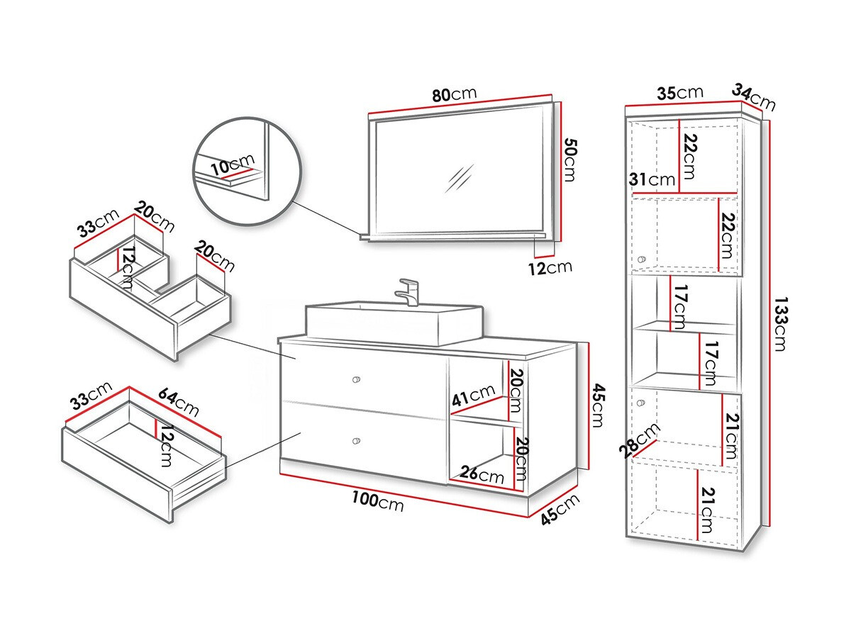 Dimenzije ormarića za umivaonik: