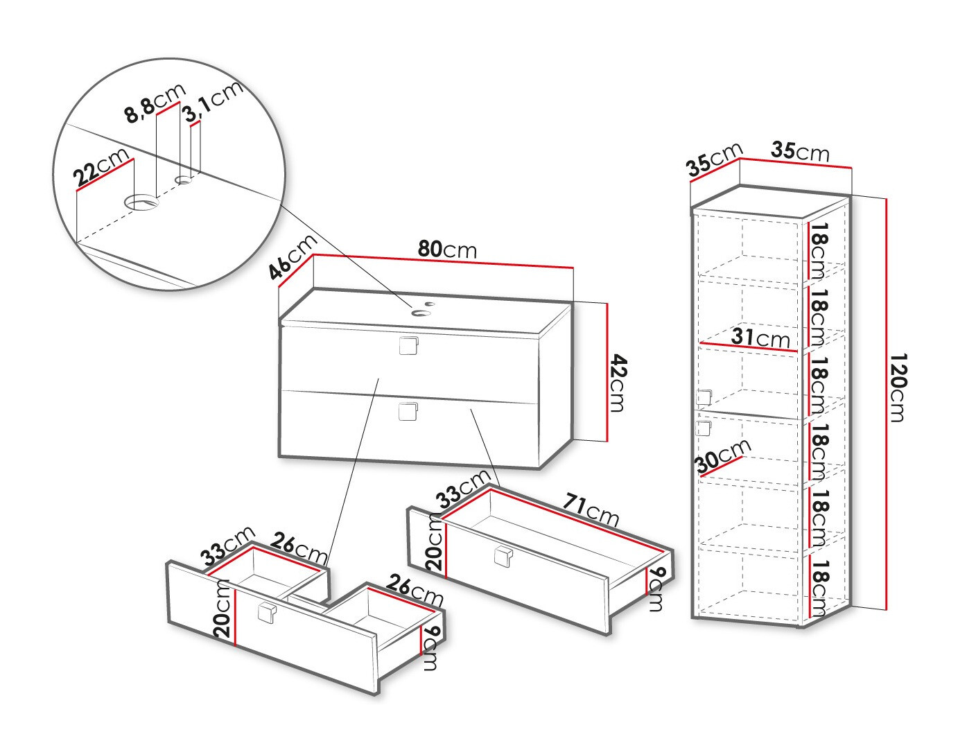 Dimenzije ormarića za umivaonik: