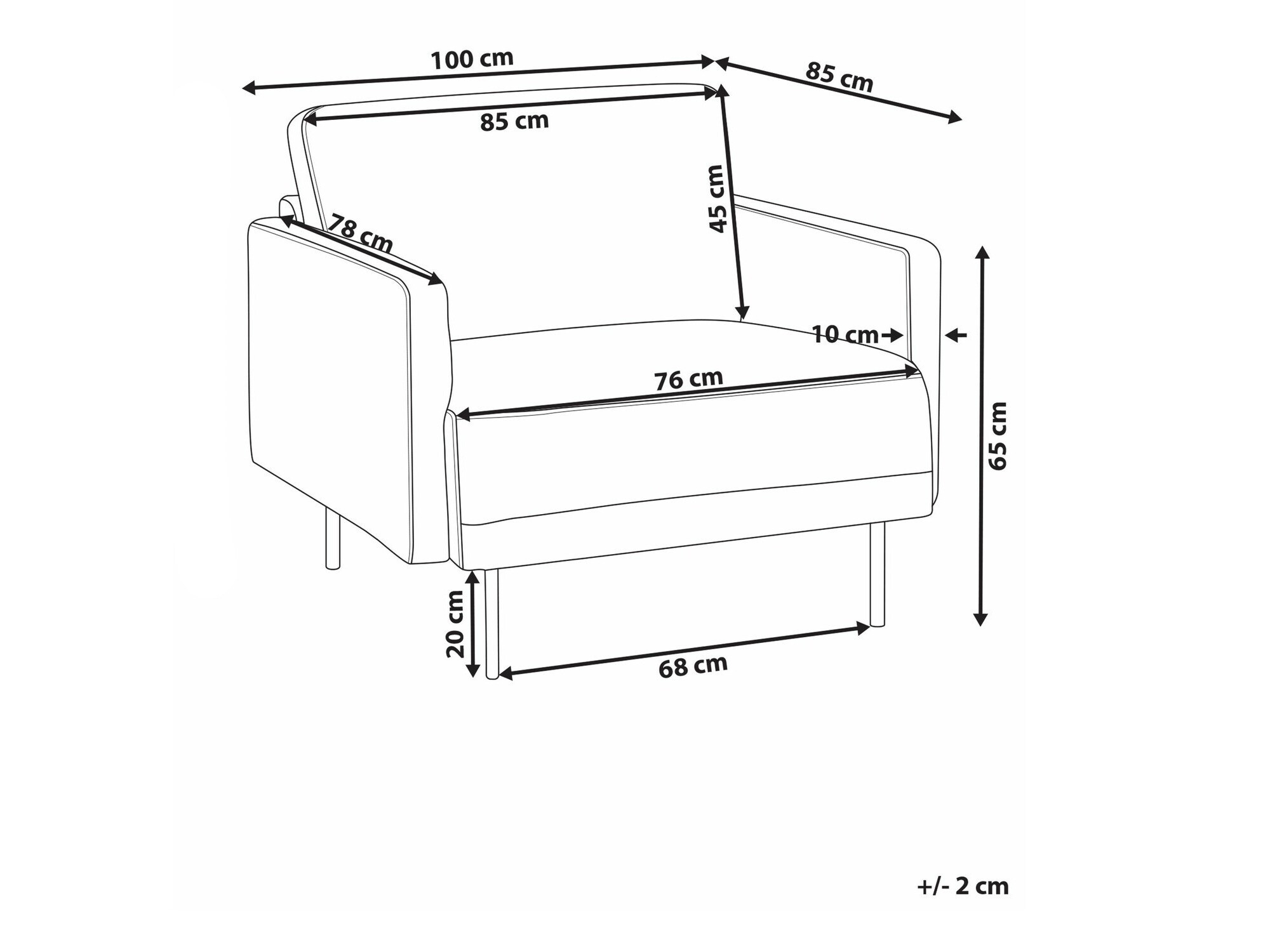 Dubina naslona za ruke: