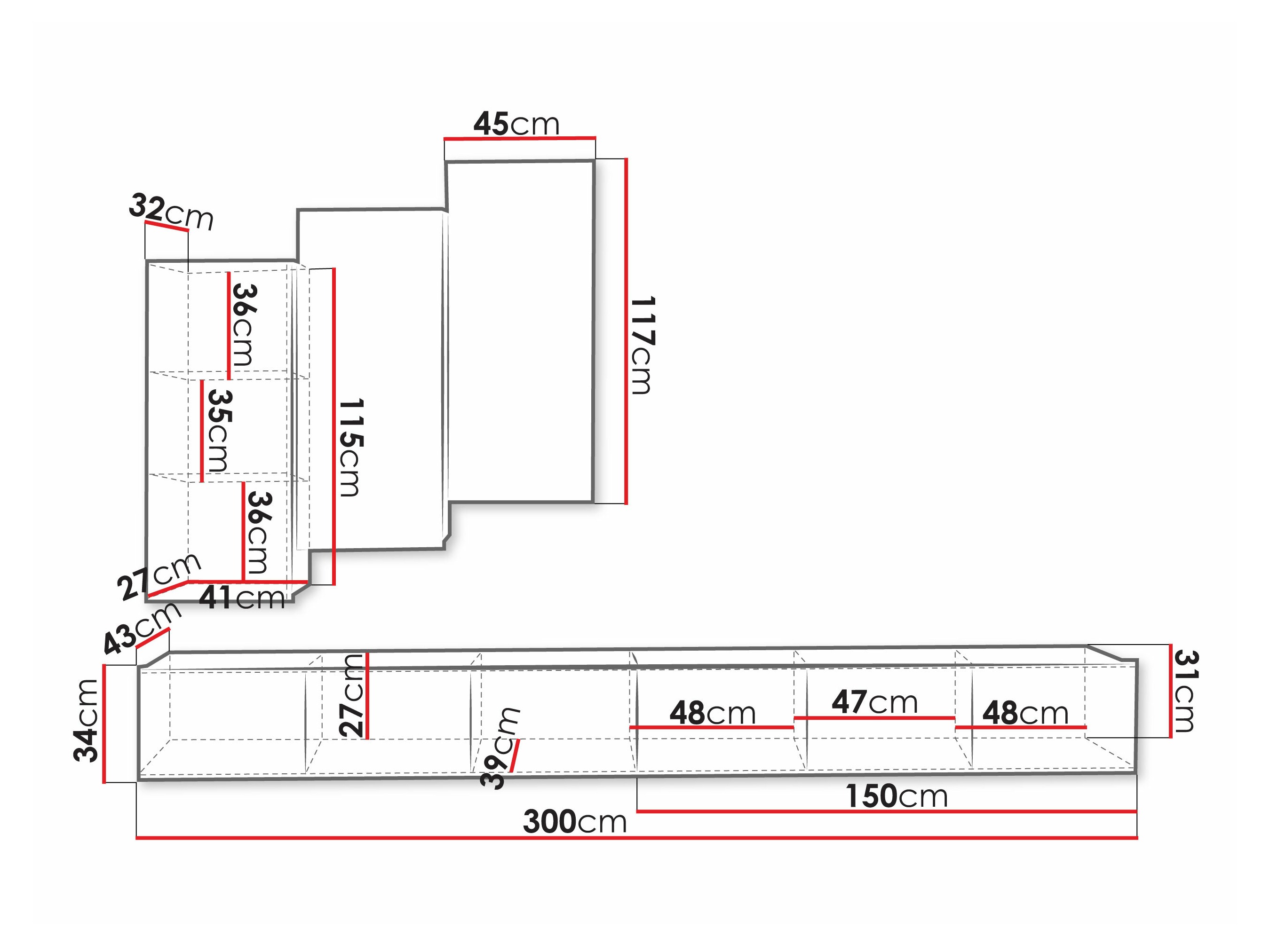 32 x 300 x 43 cm
