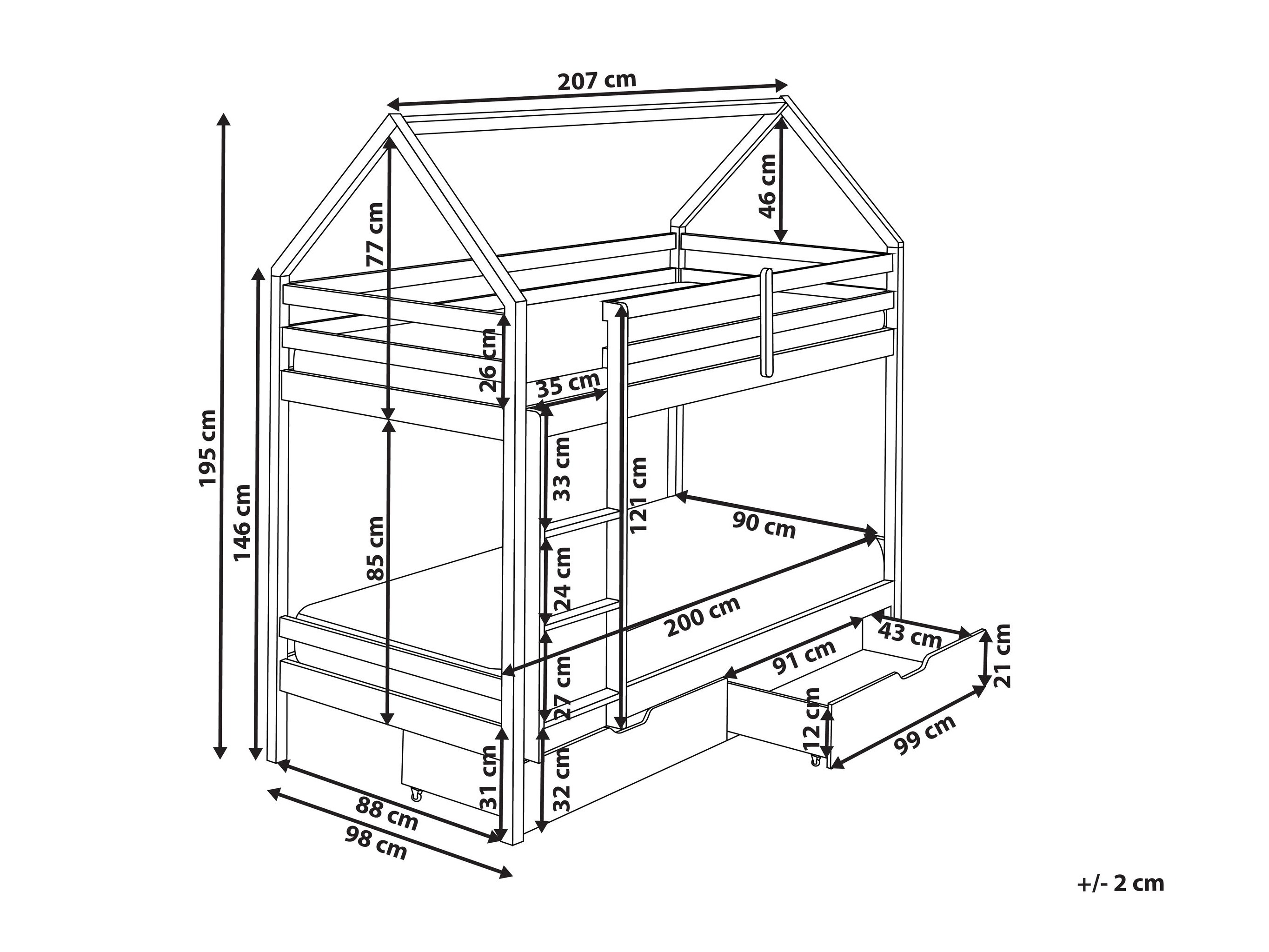 - 90 x 200 cm