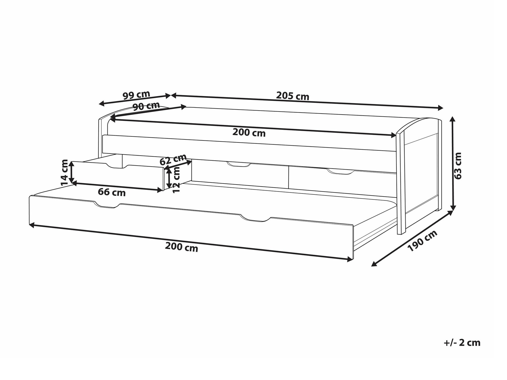 - 90 x 200 cm