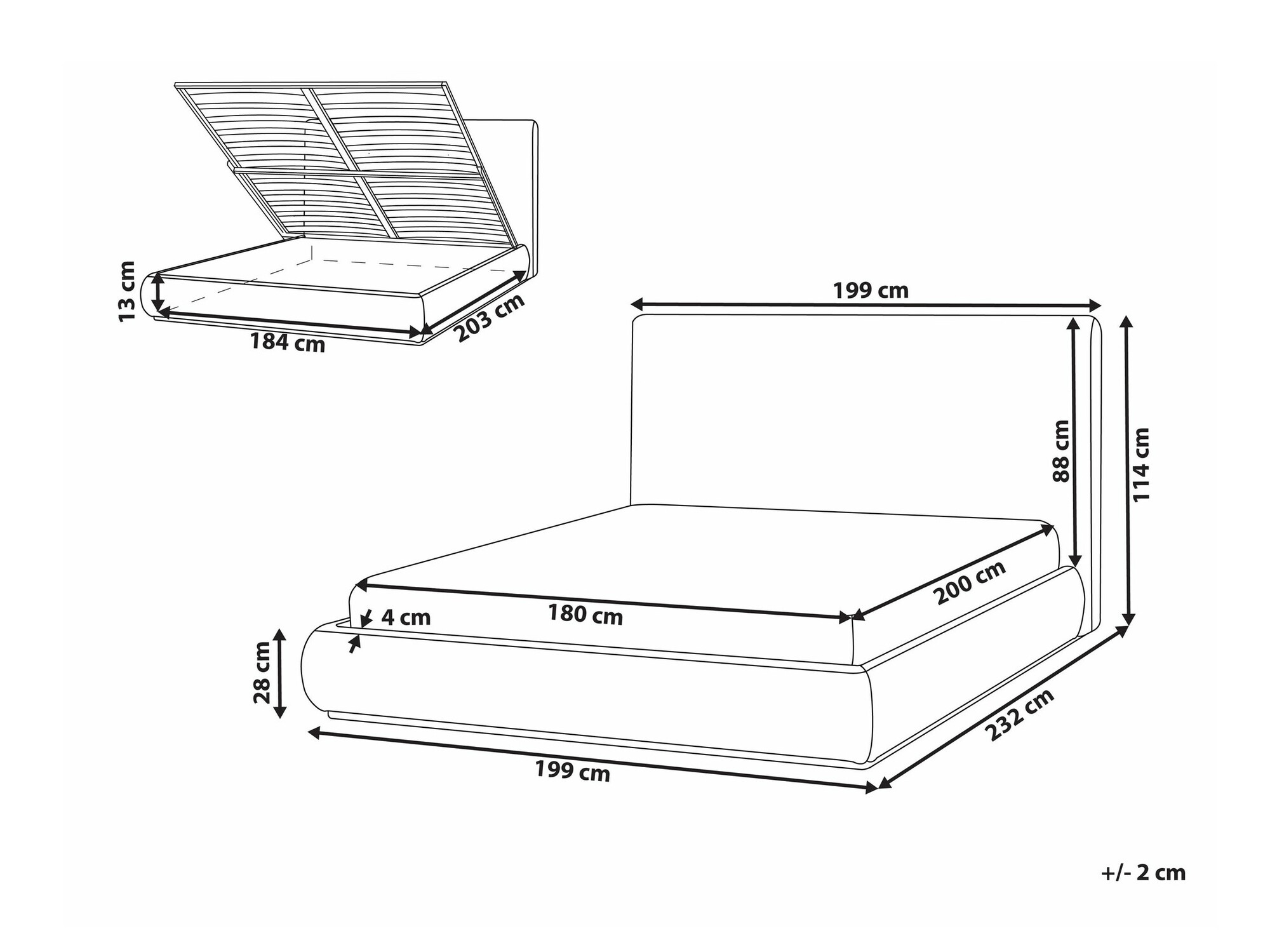 - 180 x 200 cm