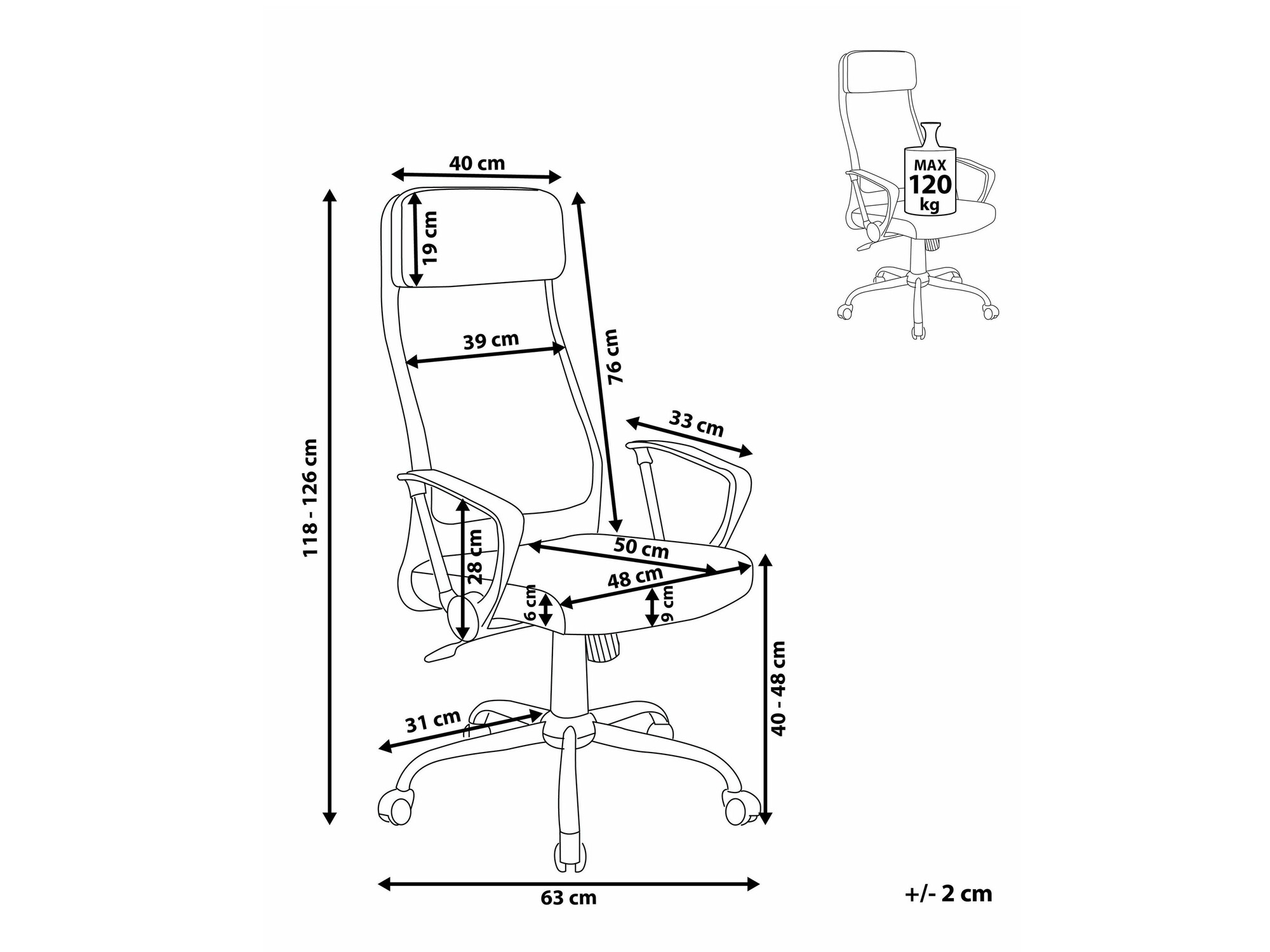 Maksimalna visina sjedišta: