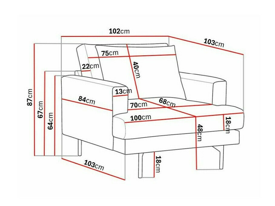 Dubina naslona za ruke: