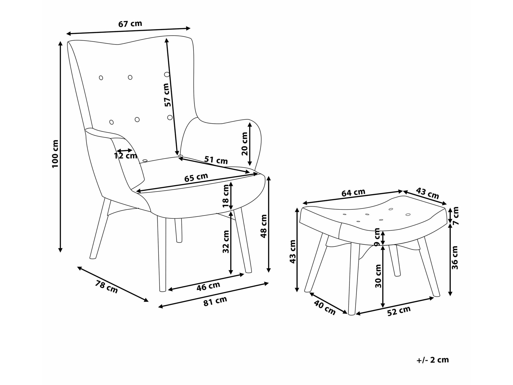 43 x 64 x 43 cm
