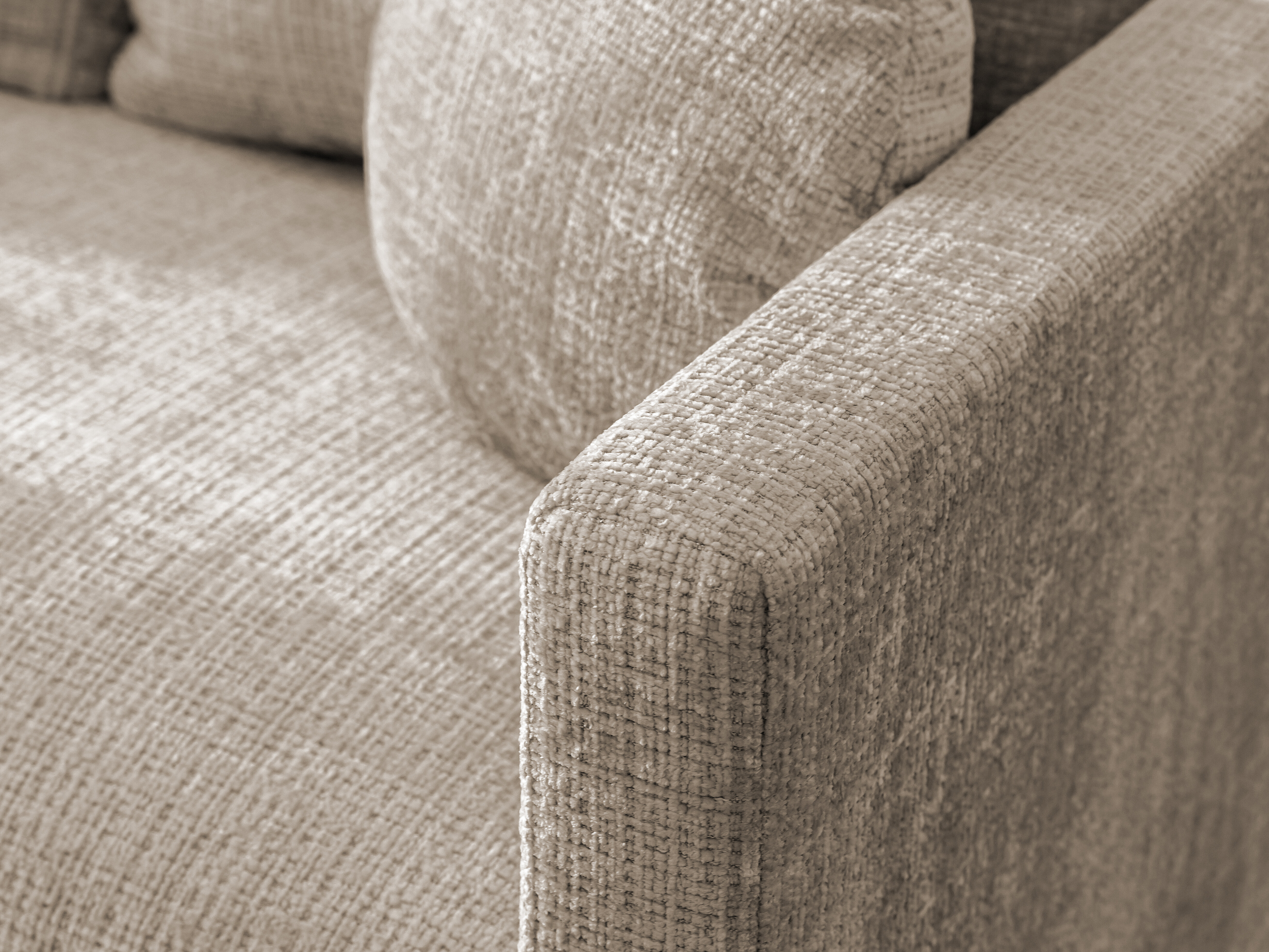 Mekana i nježna tkanina s teksturiranom površinom i suptilnim sedefastim sjajem. Površina tkanine je baršunasta i može mijenjati nijansu ovisno o osvjetljenju. Tkanina posjeduje „Reach“ certifikat koji potvrđuje da ne sadrži štetne tvari. Preporučuje se da površinu čistite isključivo blagim sredstvima za čišćenje koja su posebno namijenjena za tapecirani namještaj.