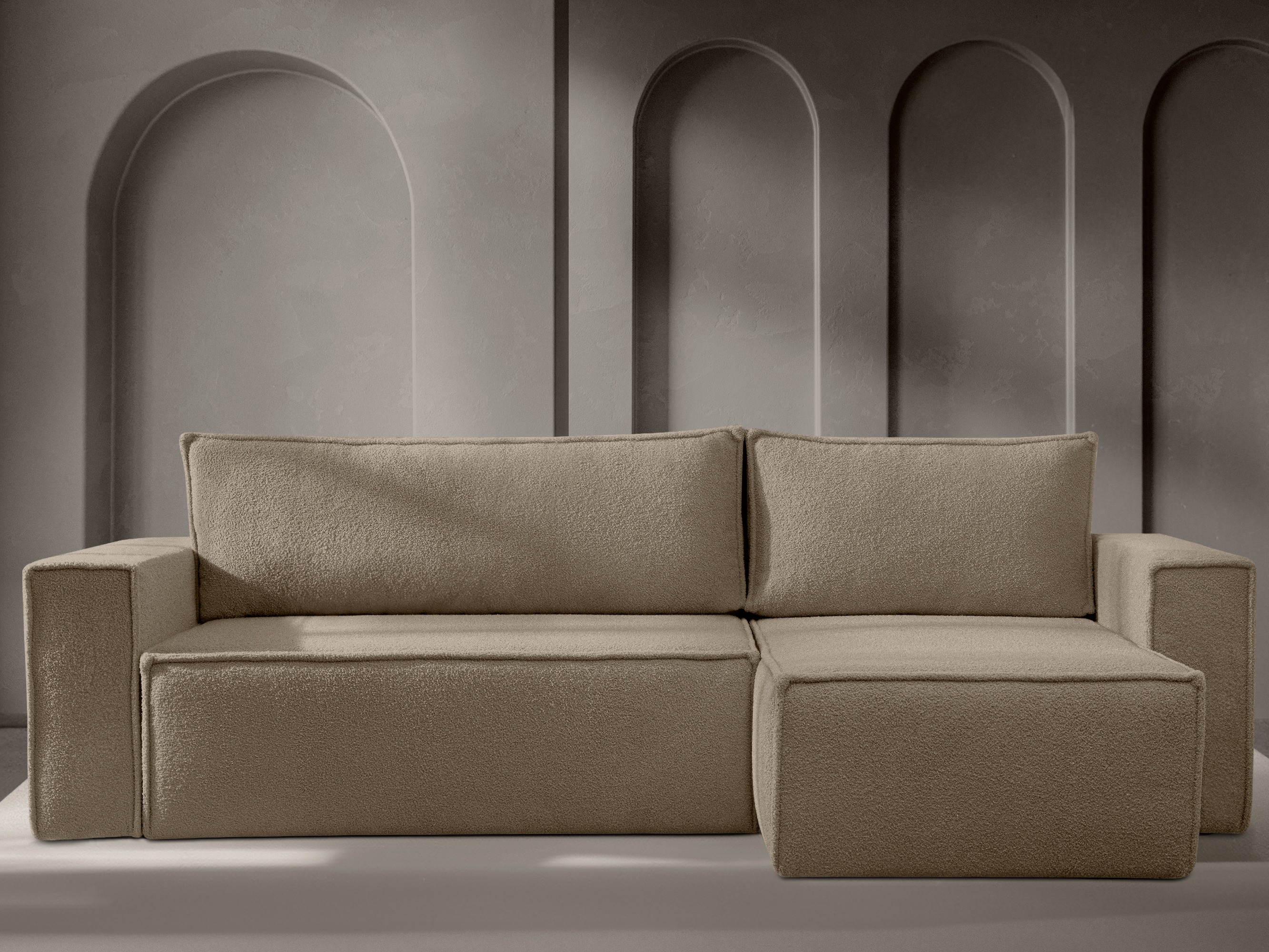 Tkanina izrađena od recikliranog poliestera, s uzorkom petlji i čvorova u različitim veličinama, zajedno sa suptilnim sjajem koji namještaju daje specifičan karakter. Preporučuje se da površinu čistite isključivo blagim sredstvima za čišćenje koja su posebno namijenjena za tapecirani namještaj.