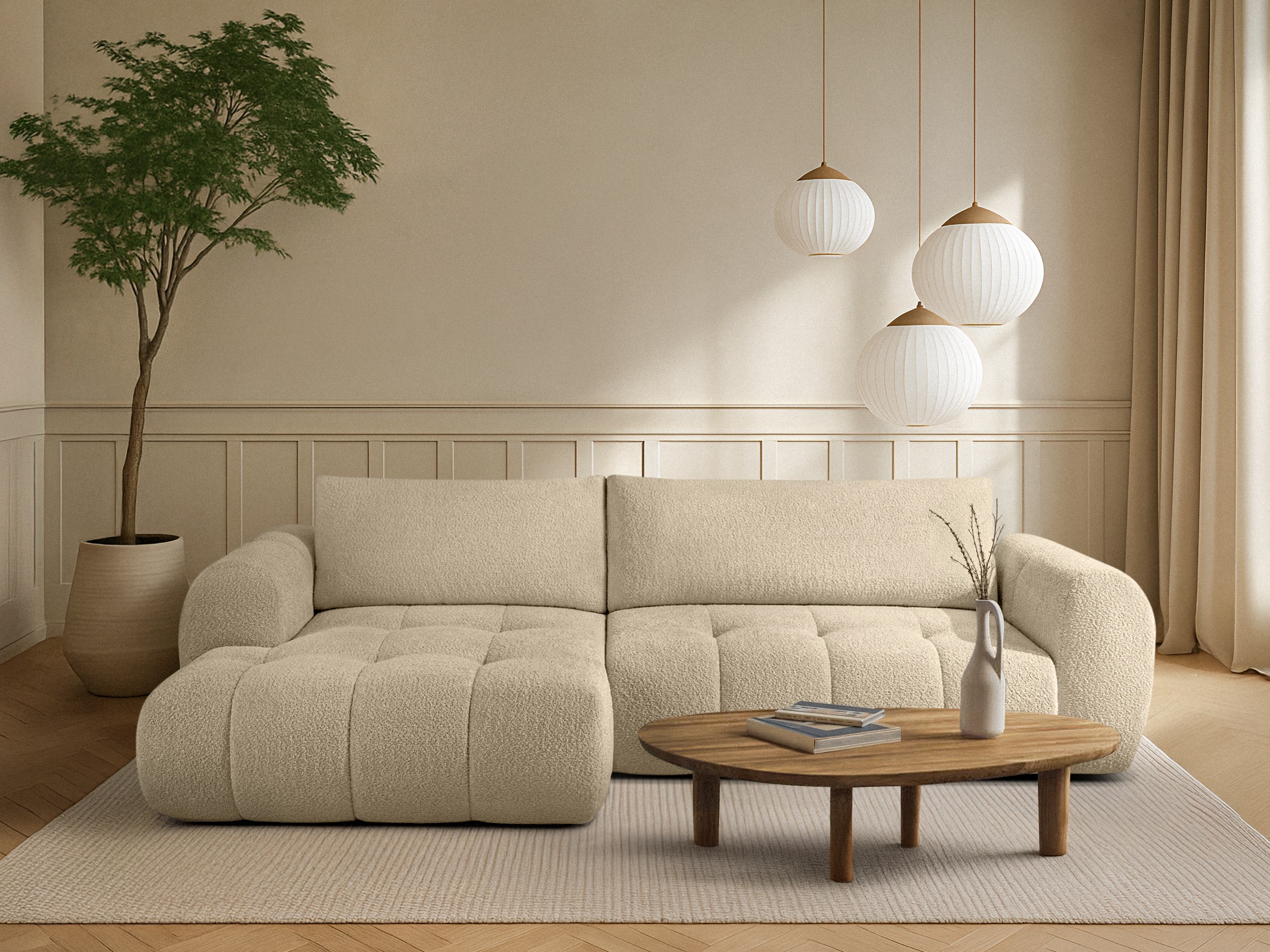 Mekana tkanina koja se uklapa i u skandinavski i u moderni stil interijera. Ne sadrži alergene tvari. Kako bi se očuvao izgled, površinu treba njegovati samo blagim sredstvima za čišćenje posebno namijenjenim za tapecirani namještaj.