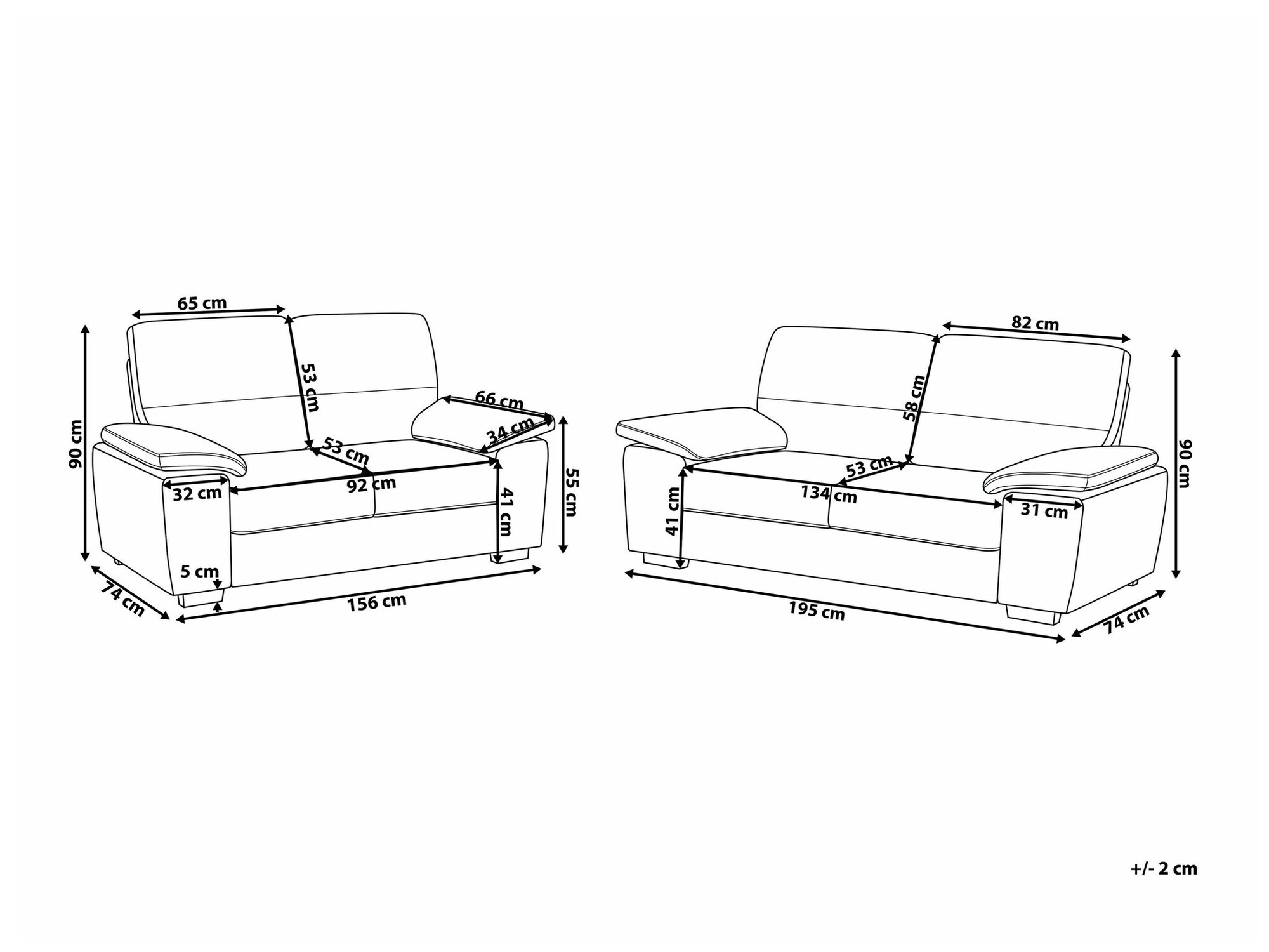 90 x 195 x 74 cm