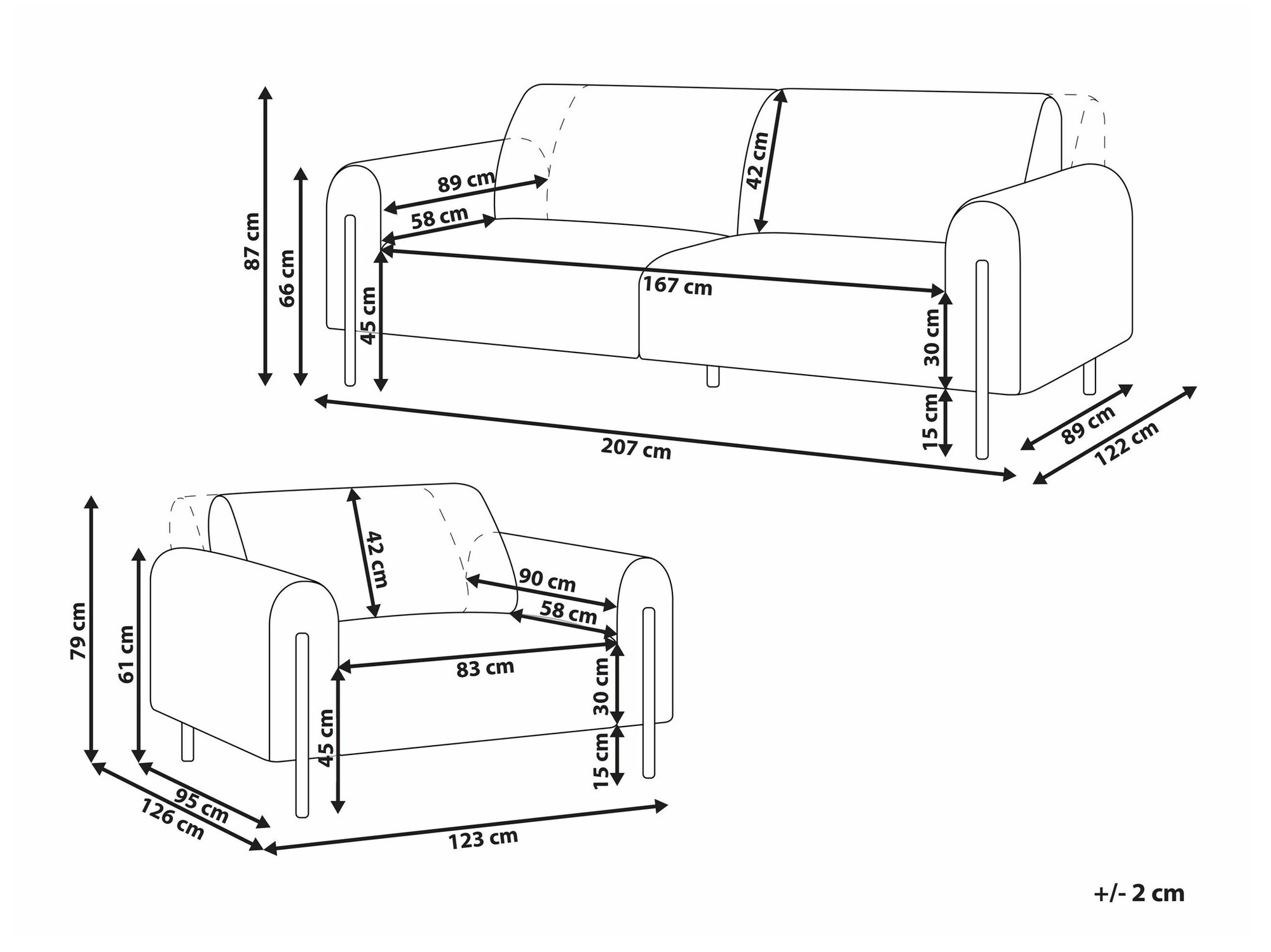 87 x 207 x 89 / 122 cm