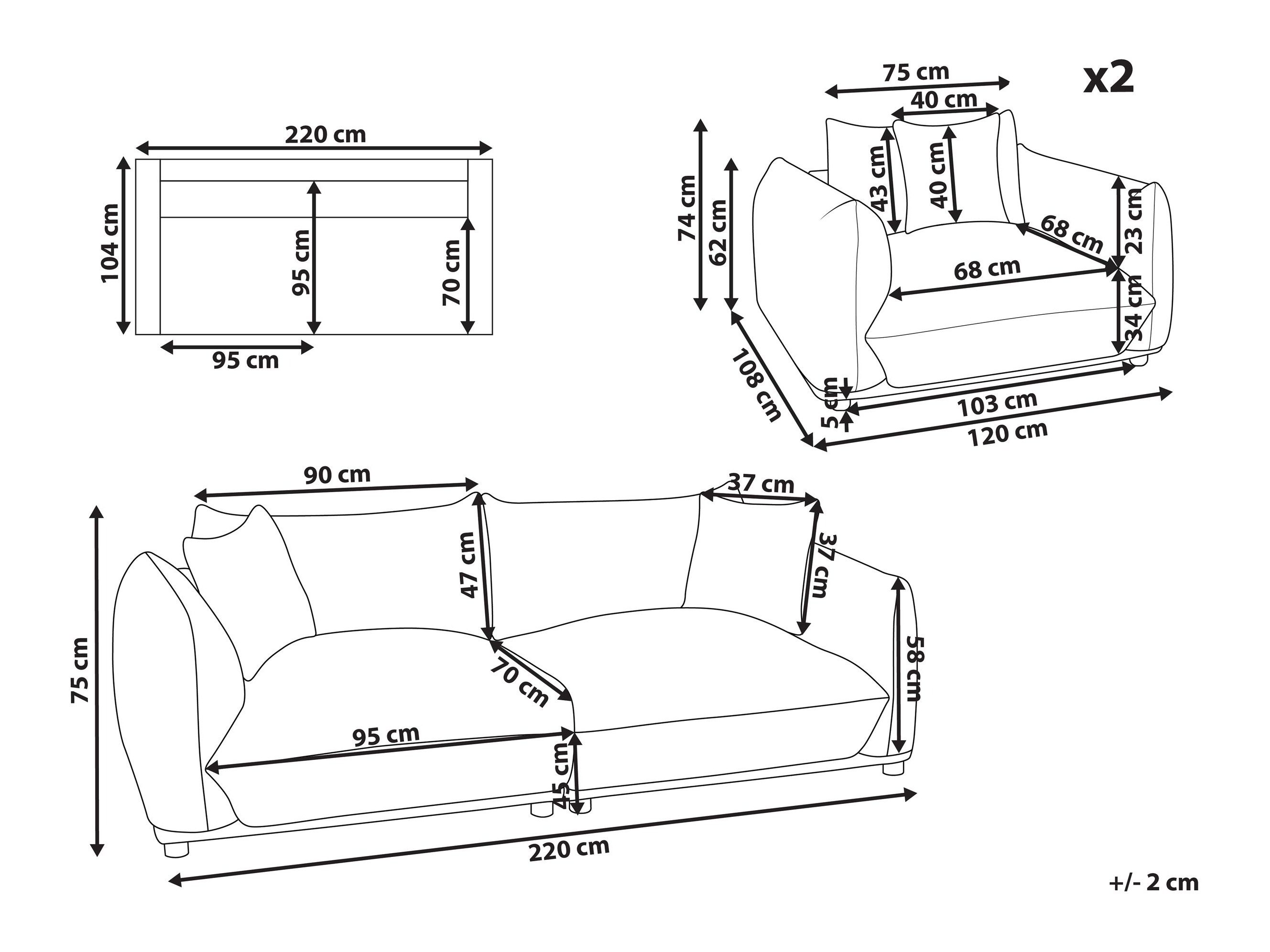 75 x 220 x 104 cm