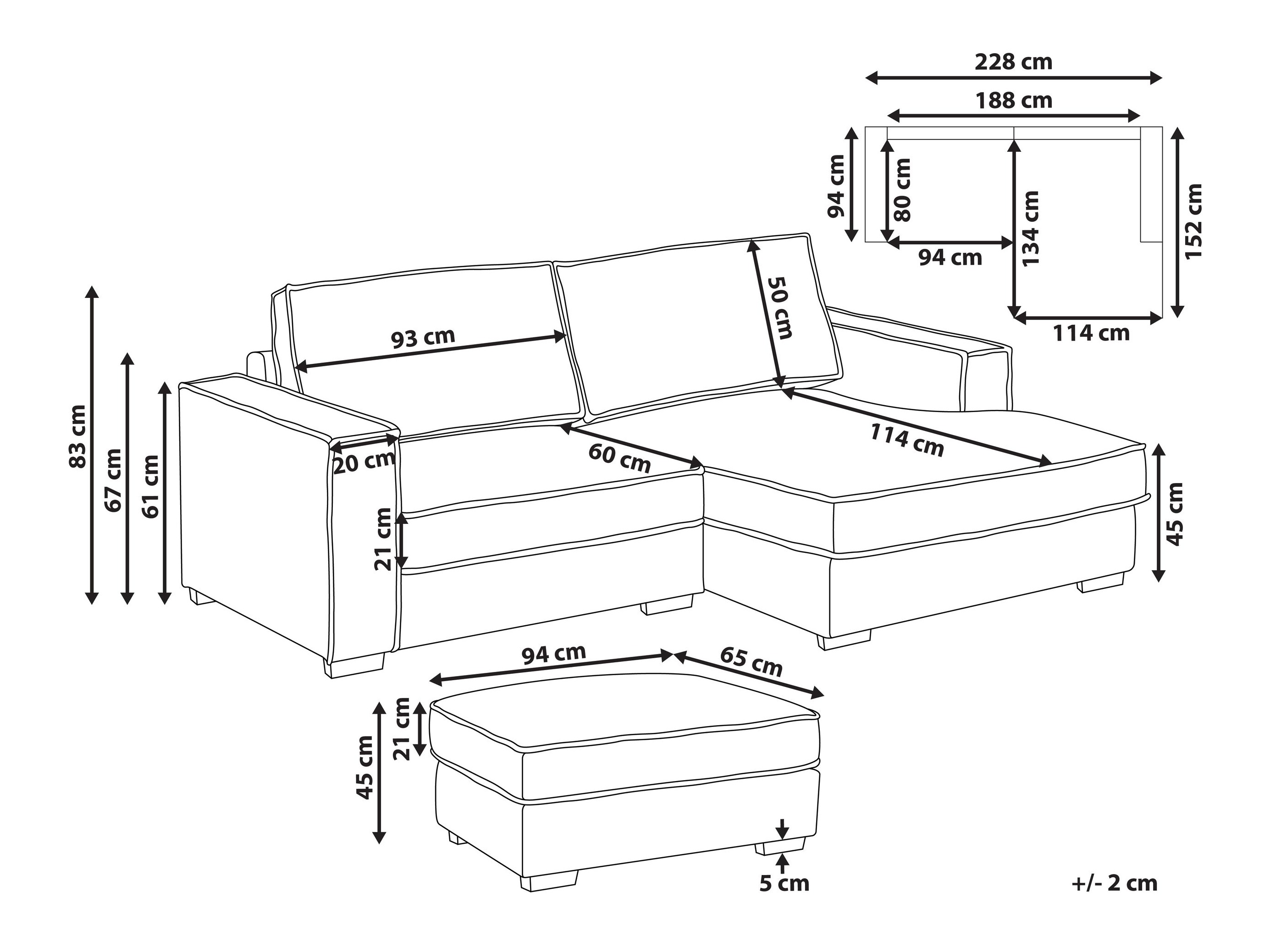 83 x 228 x 152 cm