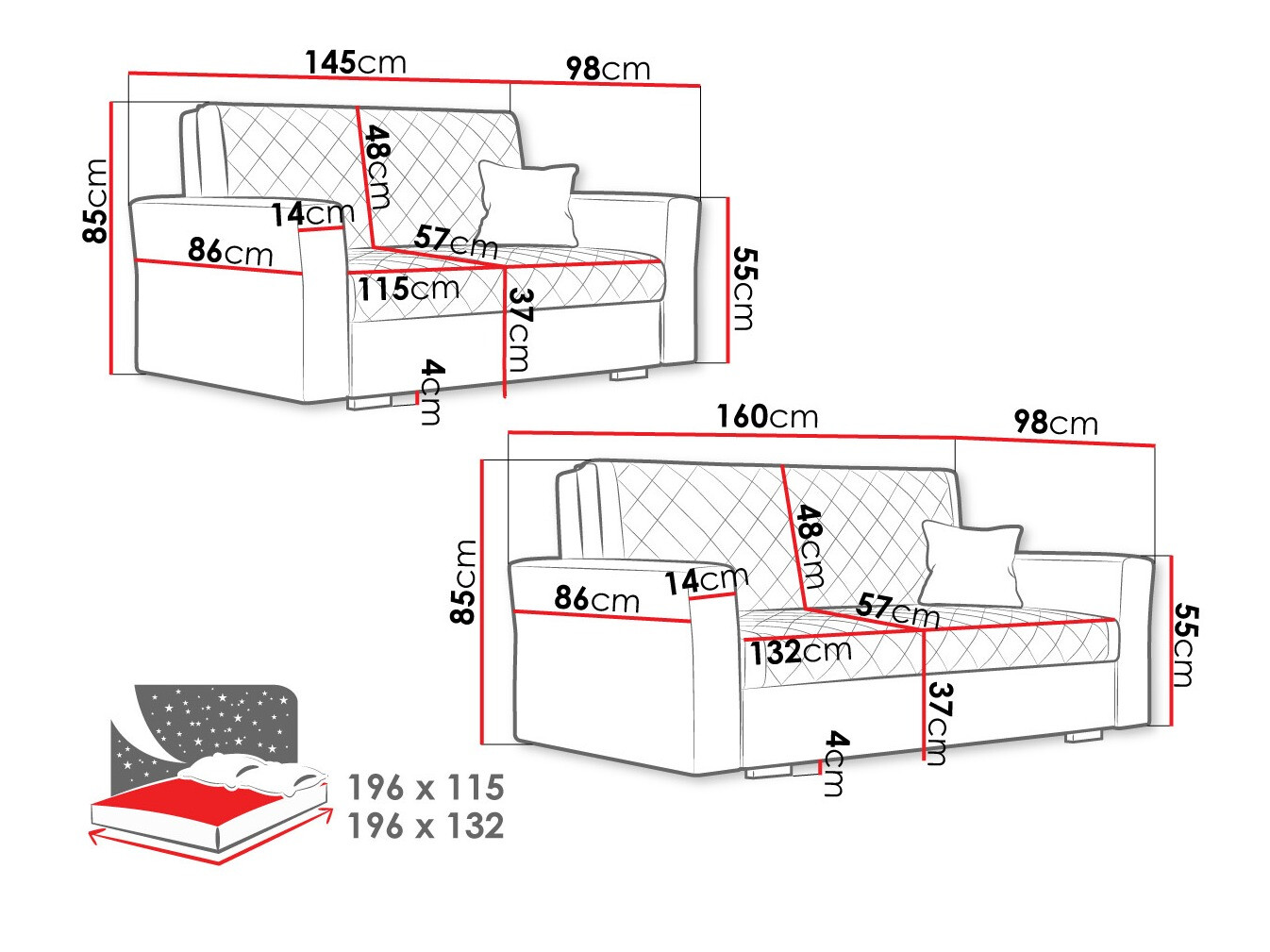 Dimenzije kauča: