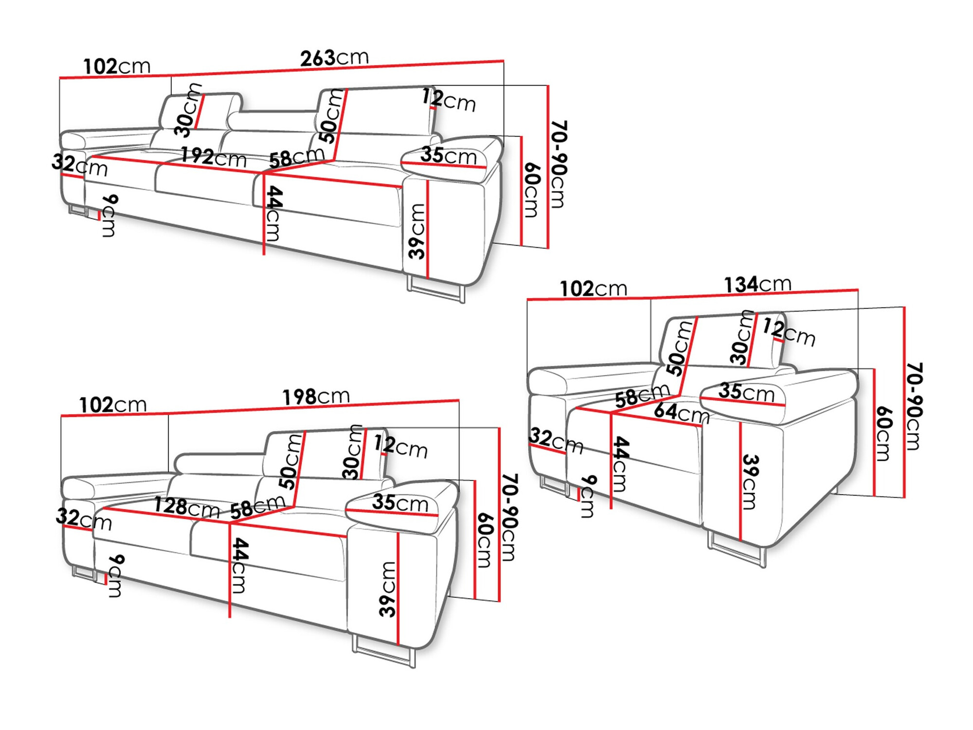 70 x 263 x 102 cm